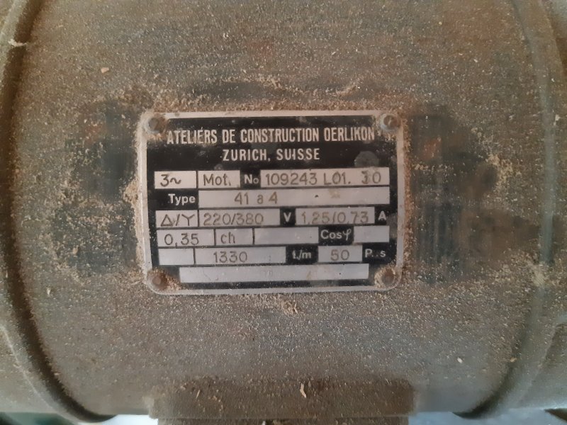 J'hérite d'un Backstand Baby des années heu... < 1970 je pense. Le moteur est un triphasé, actuellement branché en étoile. Voici la plaque signalétique :