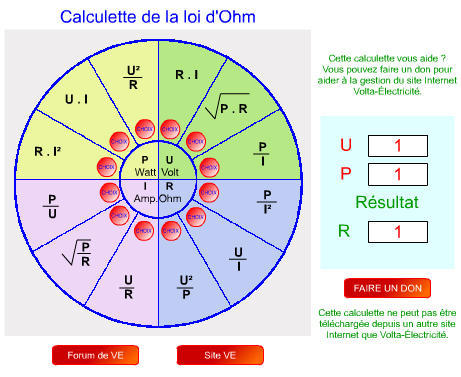 Lien de téléchargement : Calculette Cercle de la loi d'Ohm