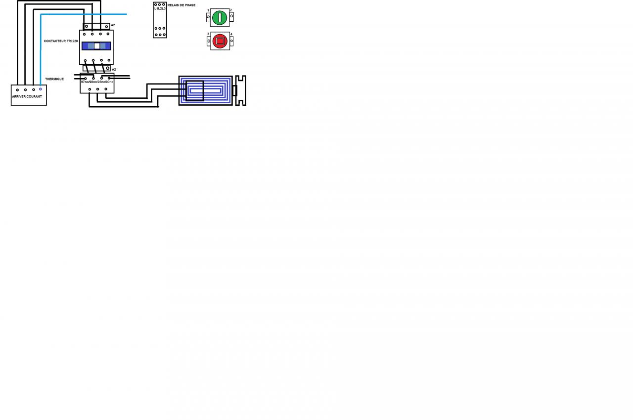il ya un contacteur tri avec un relais thermique un relais de phase un 2 bouton poussoir un marche un autre arrêt