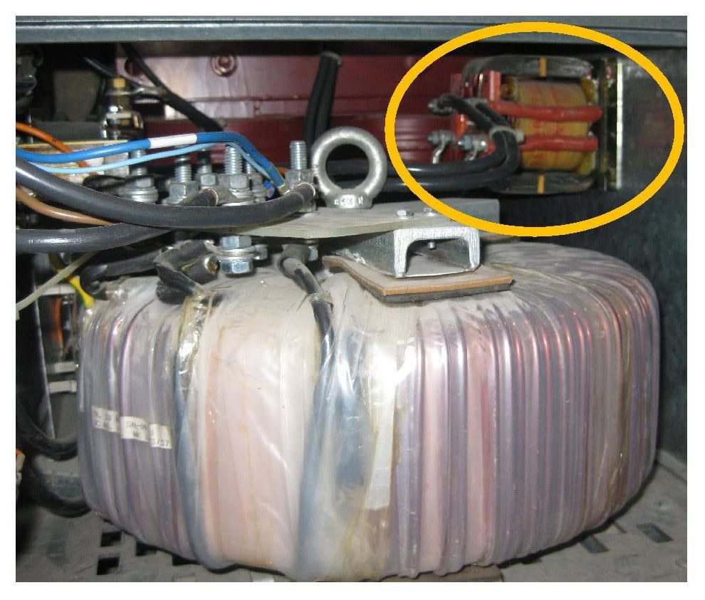 Celui ci est situé juste avant le transfo de sorti (il y est relié directement), et son primaire provient de l'inverseur statique je pense (Pas sur...) et n'ayant aucune doc ou schema à part le mode d'emploi, je ne sais pas a quoi il peut bien servir.